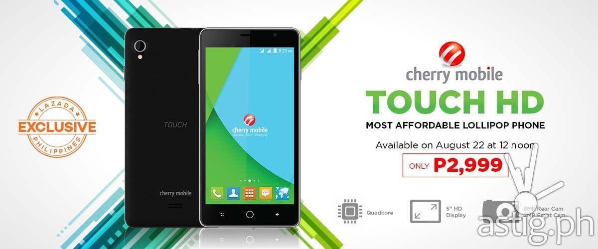 The long weekend this August calls for a celebration, and there’s no better way to celebrate the holiday break than to release affordable phones! Guess what: The most affordable Lollipop phone, the Cherry Mobile Touch HD will be available at Lazada on Saturday, August 22 at 12noon!