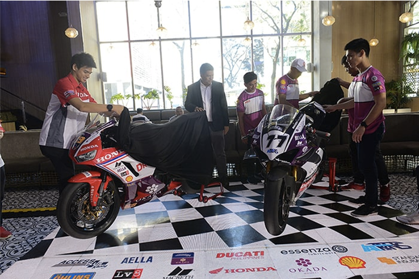 Honda Philippines-Okada Manila-Access Plus Racing is sponsored by Honda Philippines Inc., Okada Manila, Essenza, AELLA, Öhlins Philippines, and Dickies Philippines.