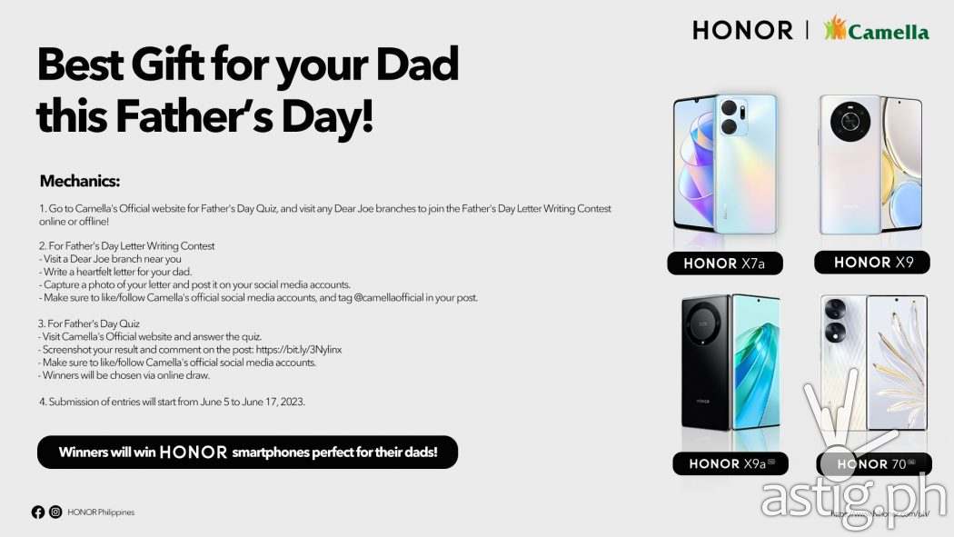 Both contests will run until June 17, 2023, and various winners will receive HONOR devices as prizes such as HONOR 70, HONOR X9, HONOR X7a, and the limited edition HONOR X9a 5G in Midnight Black. Make sure to follow Camella’s official social media accounts to get the latest Dear Awesome Dad updates.