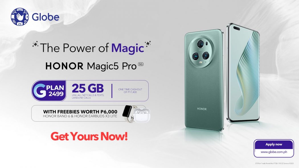MANILA, Philippines – HONOR Philippines has just announced the availability of its newest flagship HONOR Magic5 Pro via Globe Postpaid Plans. You can now avail it through GPlan 2499 with one-time cash-out of Php 17,400 to enjoy 25GB Data, Unli All-Net Call & Text and Landline calls!