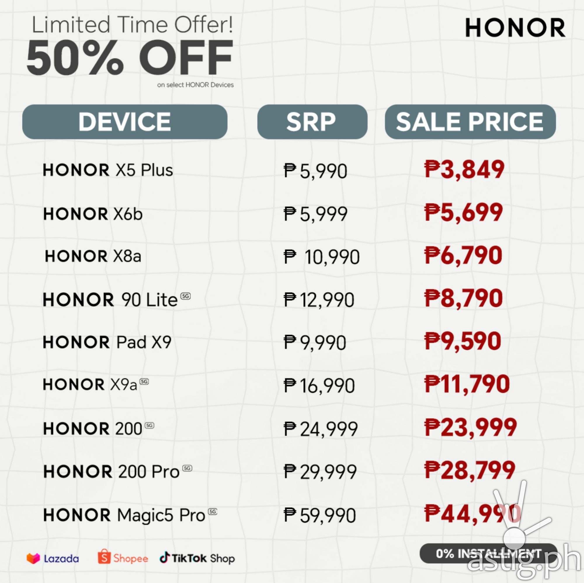 MANILA, Philippines – The leading global smart devices provider, HONOR, has started the festive season with vouchers for huge discounts and savings on PayDay Sale from September 28 to October 2. Worry less on installments because HONOR is still offering 0% interest on Shopee, Lazada, and Tiktok Shop!