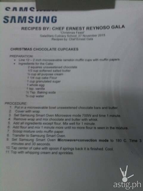 Such was the thrust of Samsung Digital Appliance when they partnered with Gala Star Culinary School and started this year’s Samsung-Gala Cooking and Baking Session.  Featuring the Samsung Smart Oven which helps you cook things fast (imagine baking cupcakes for only 3-4mins instead of 25-30mins) and the recipes that Chef Ernest Gala has come up for this session, cooking is truly a breeze!