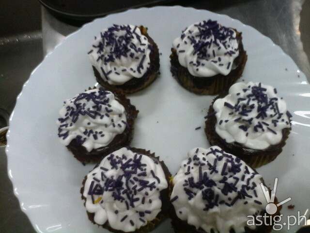 Chef Ernest Gala demonstrating how to do the Christmas Chocolate Cupcake