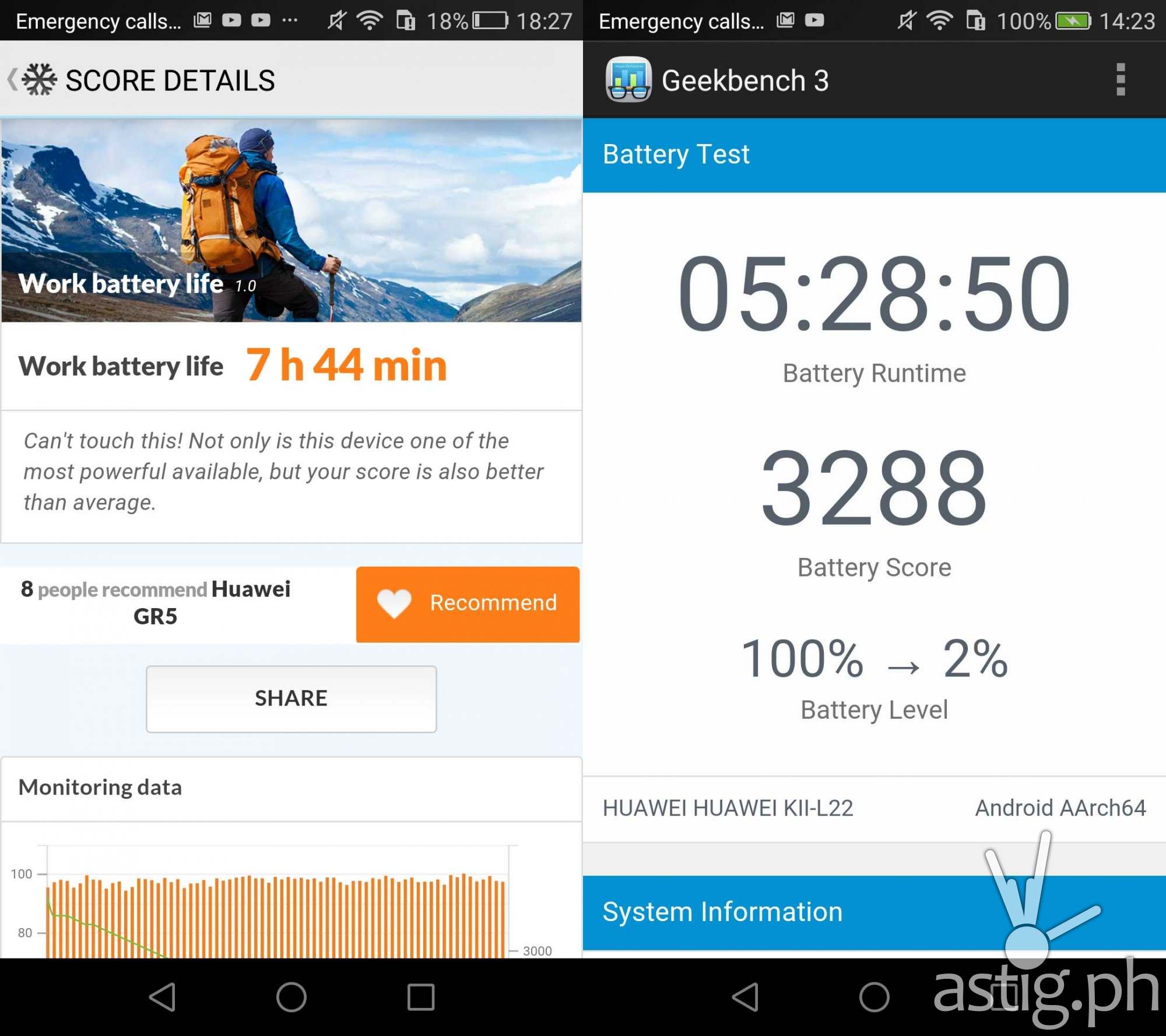We already knew that the Snapdragon 616 is power efficient, but we were still surprised by how long the GR5 could last on a single charge. We managed to hit 7 hours and 44 minutes in PCMark (no SIM), which is so much more than we expected considering it only has a 3000 mAh battery.