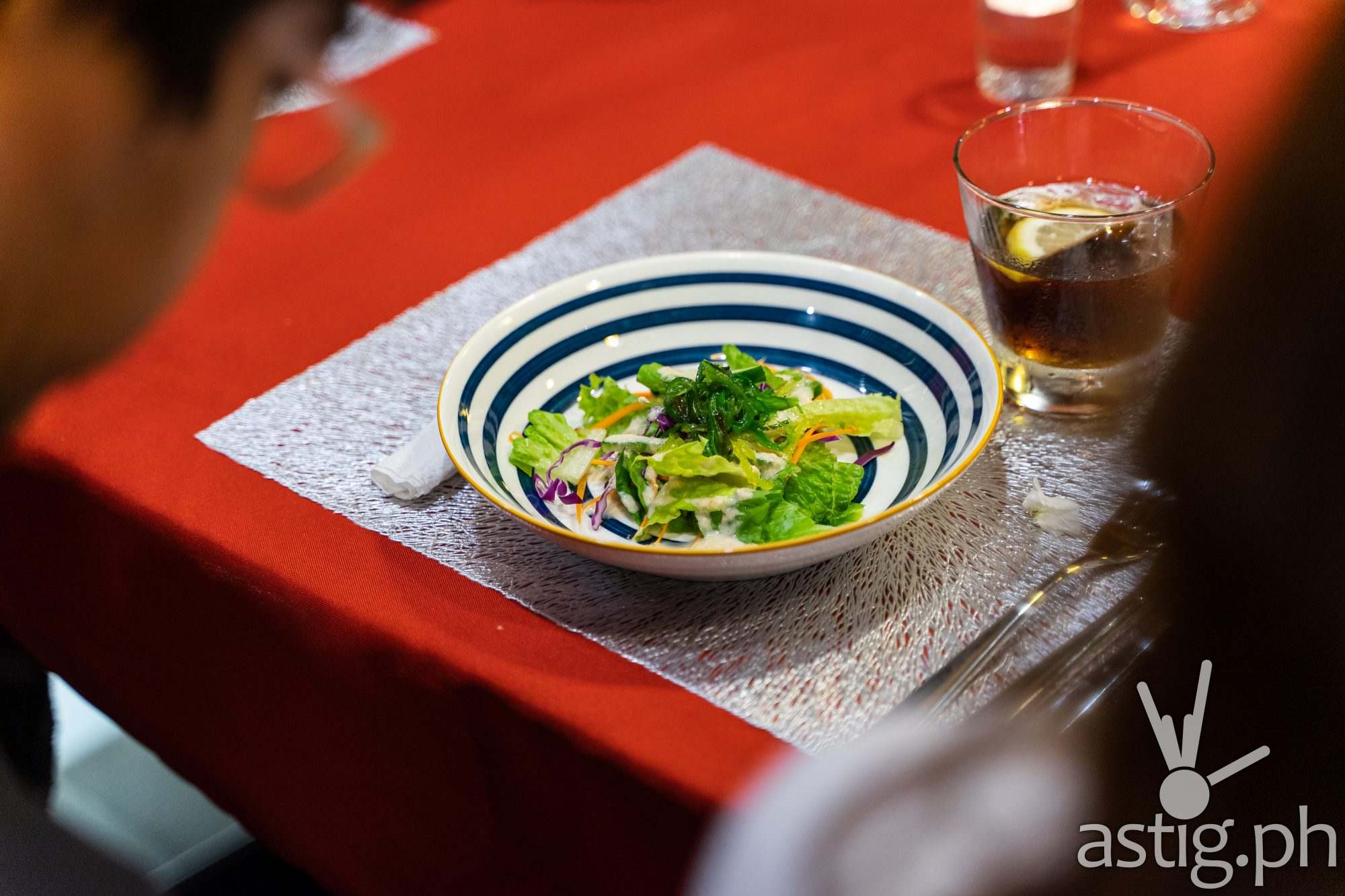 For the entrée, one can enjoy Wakame Salad with Asian dressing, which combines the crunchy texture of the wakame and the tender vegetable leaves with a flavor contrast of the creamy and fragrant sesame-based sauce. The miso soup has a rich and mellow flavor which is further enhanced by the addition of mushrooms and kelp.