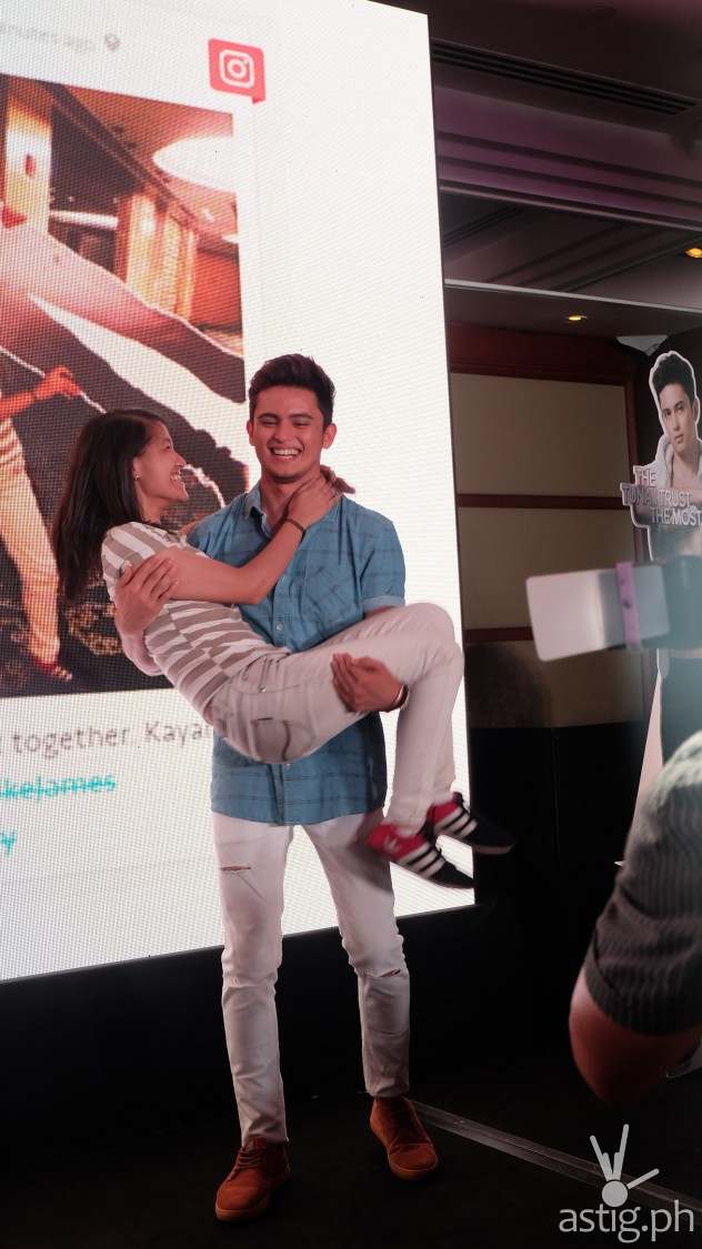 I’m sure real life sweetheart Nadine Lustre won’t mind if this member of the press got a real surprise lift from handsomely fit James during the announcement of winners portion. Ikaw na ateh!!!