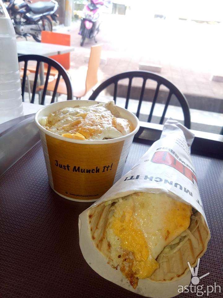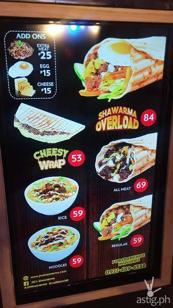 But on their current menu line up now, you can choose from regular shawarma, the all meat, cheesy wrap, their bestseller which is the overload with the inclusion of a sunny side up egg on top! wow! That's something new!