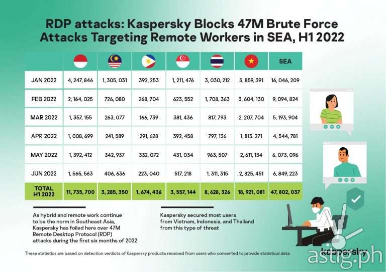MANILA, Philippines – As hybrid and remote work continue to be the norm in Southeast Asia (SEA), Kaspersky has foiled here over 47M Remote Desktop Protocol (RDP) attacks during the first six months of 2022.