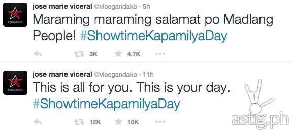 #ShowtimeKapamilyaDay generated over 7 million tweets within 24 hours. The show in Araneta is considered the kickoff to the sixth anniversary of the noontime show and start of its “Magpasikat” segment where hosts will outperform each other.