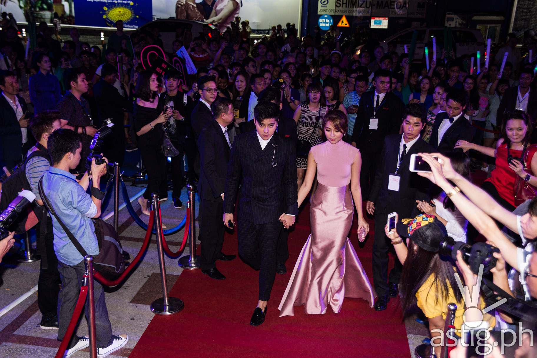 Prior to the gala night, Kathryn and Daniel already felt the love from Vietnamnese Kathniel fans when they arrived at the Saigon Airport Friday afternoon. Armed with banners, shirts, posters, and caps, Vietnamese fans chanted “Kathniel,” and some even sang the “Got to Believe” theme song.