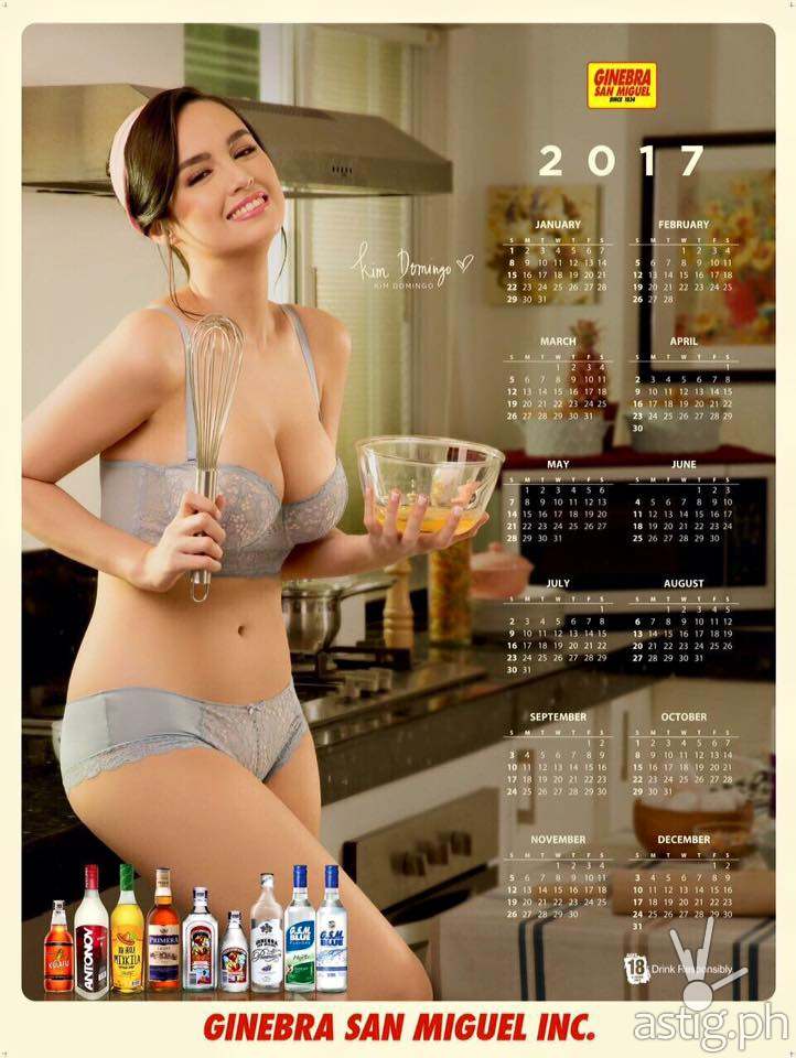 MANILA, Philippines – Kim Domingo is Ginebra San Miguel’s calendar girl for the year 2017. She follows the footsteps of established sex symbols Ellen Adarna and Arci Munoz, who represented the liquor brand’s calendars in 2015 and 2016.