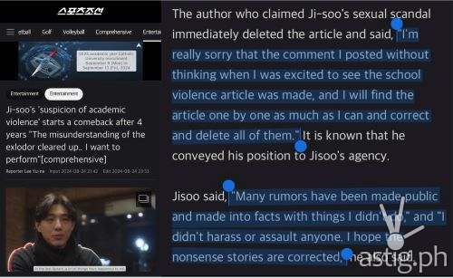 Ji-soo also stated, “Many rumors have become public knowledge and established facts because of things I didn’t do. All sexual assault allegations were false, and even an apology was received.”