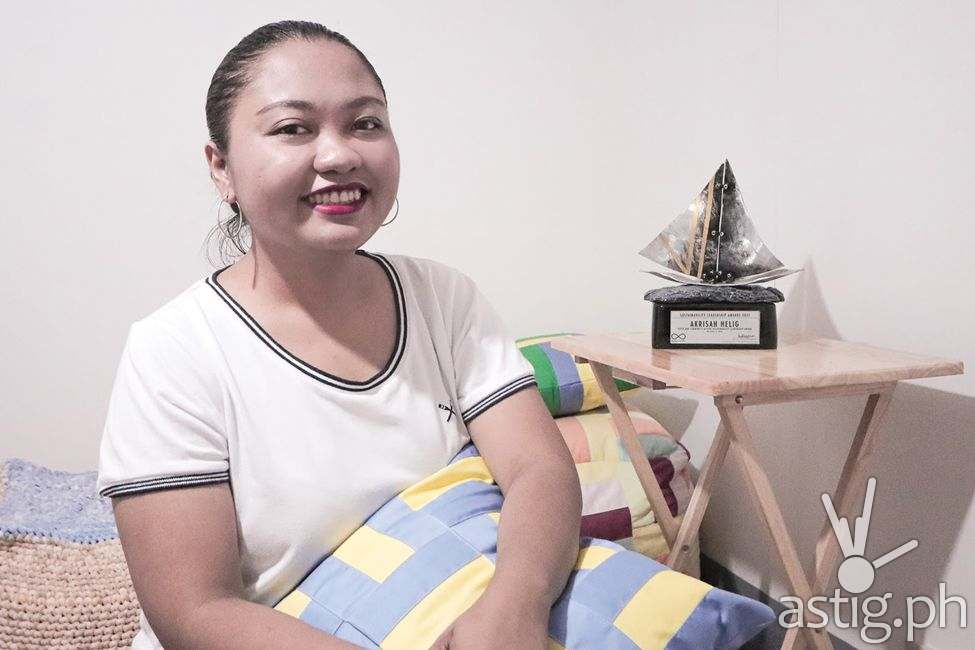 Akrisah D. Helig is the founder and owner of Kreations Upcycle Furniture Manufacturing, a Rizal-based business that creates handicrafts and home furnishings from retaso (scrap cloth), and which employs housewives and home-makers in Rizal.