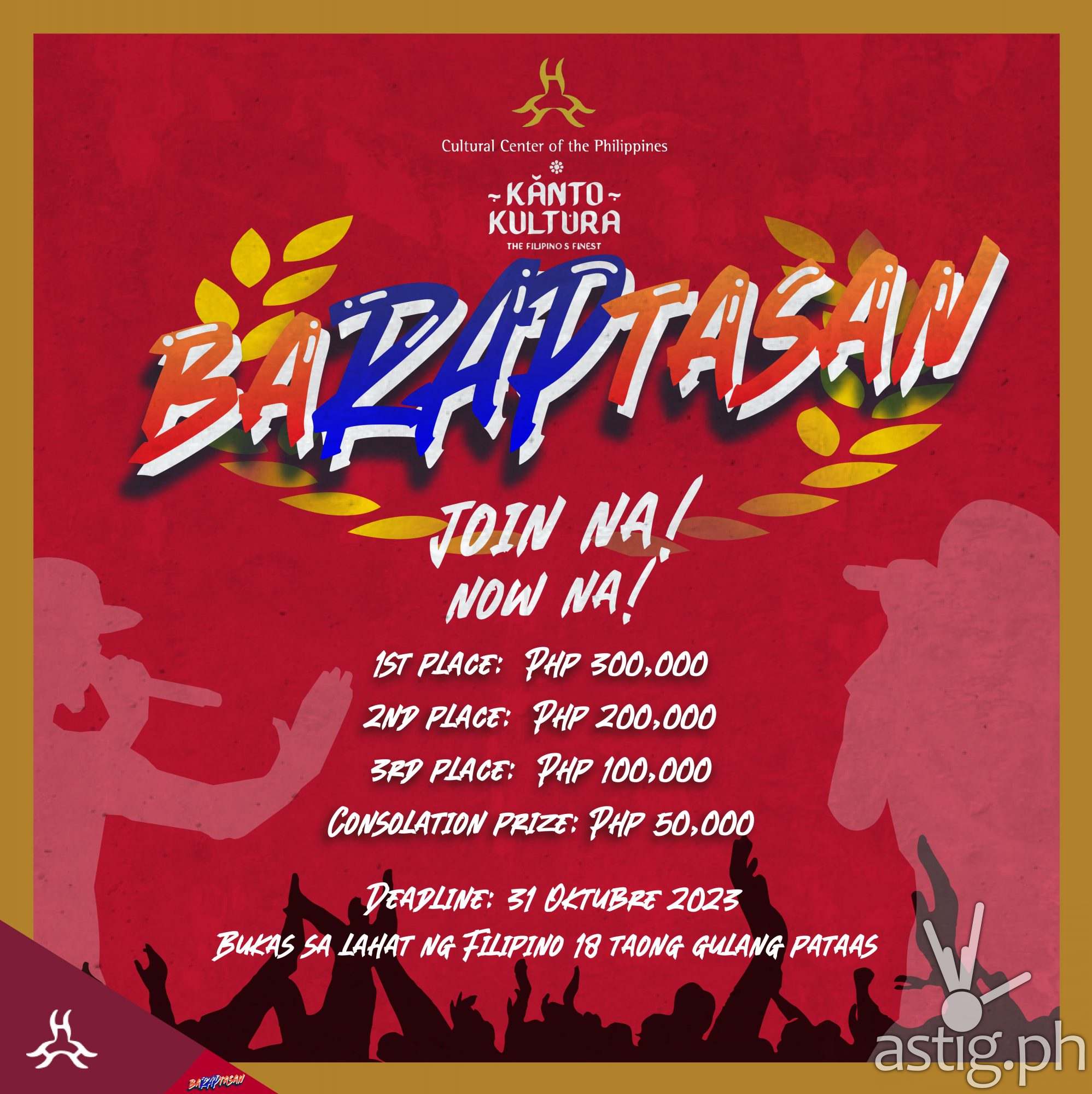 The Cultural Center of the Philippines launches the Kanto Kultura: Baraptasan 2024, a national competition that promotes Balagtasan, a poetic joust attributed to literary master Francisco “Balagtas” Baltazar, but with a modern twist.