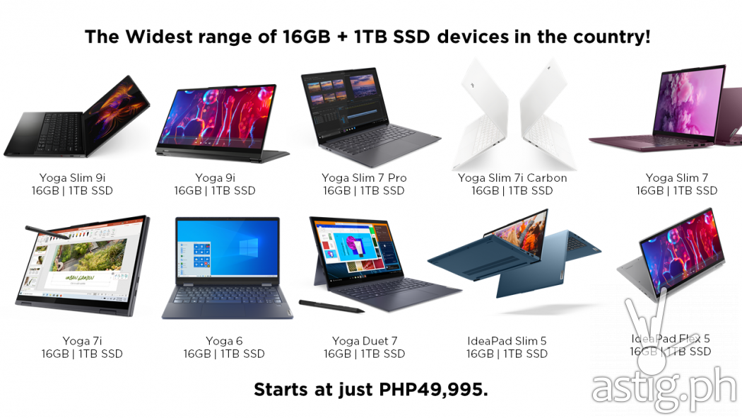 This launch marks a milestone in Lenovo’s history as it now has the widest range of devices with the powerful 16GB RAM + 1TB SSD combo in the Philippines. Along with the previously launched Yoga Duet 7, the suite spans 10 devices (Yoga Slim 9i, Yoga 9i, Yoga Slim 7 Pro, Yoga Slim 7i Carbon, Yoga Slim 7, Yoga 7i, Yoga 6, IdeaPad Slim 5, IdeaPad Flex 5) with a competitive starting price of PHP 49,995.