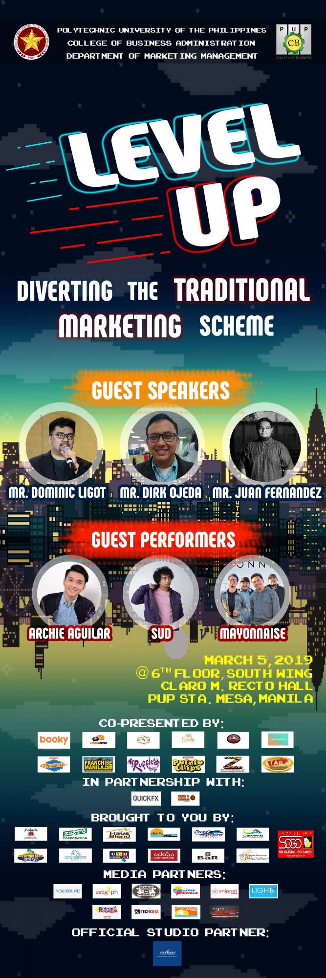 Pacm4N Productions would like to invite you to their upcoming seminar entitled: LEVEL-UP: Diverting the Traditional Marketing Scheme happening this March 5, 2019 at PUP Claro M. Recto Hall.
