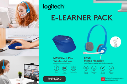 For online students, there’s the E-LEARNER PACK A, which is priced at Php 1,340. This bundle pack includes one unit of Logitech M331 Silent Plus Wireless Mouse, one unit of Logitech H150 Stereo Headset, and one free 3.55mm Y splitter audio adapter.