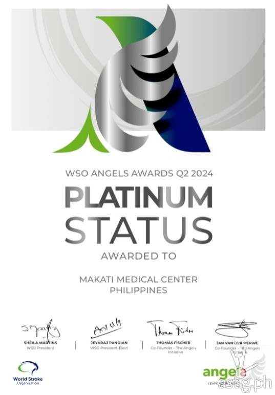 MAKATI, Philippines – Makati Medical Center (MakatiMed) received its 14th World Stroke Organization (WSO) Angels Award. Since 2019, the hospital has consistently been recognized by the WSO Angels Awards for its dedication to providing top-notch stroke care. The award categories—Gold, Platinum, and Diamond—are based on the quality of care provided to stroke patients. MakatiMed has received nine Gold, three Platinum, and two Diamond awards to date. For the second quarter of 2024, the hospital has reached the Platinum level.