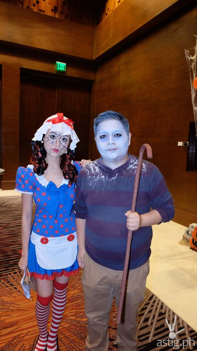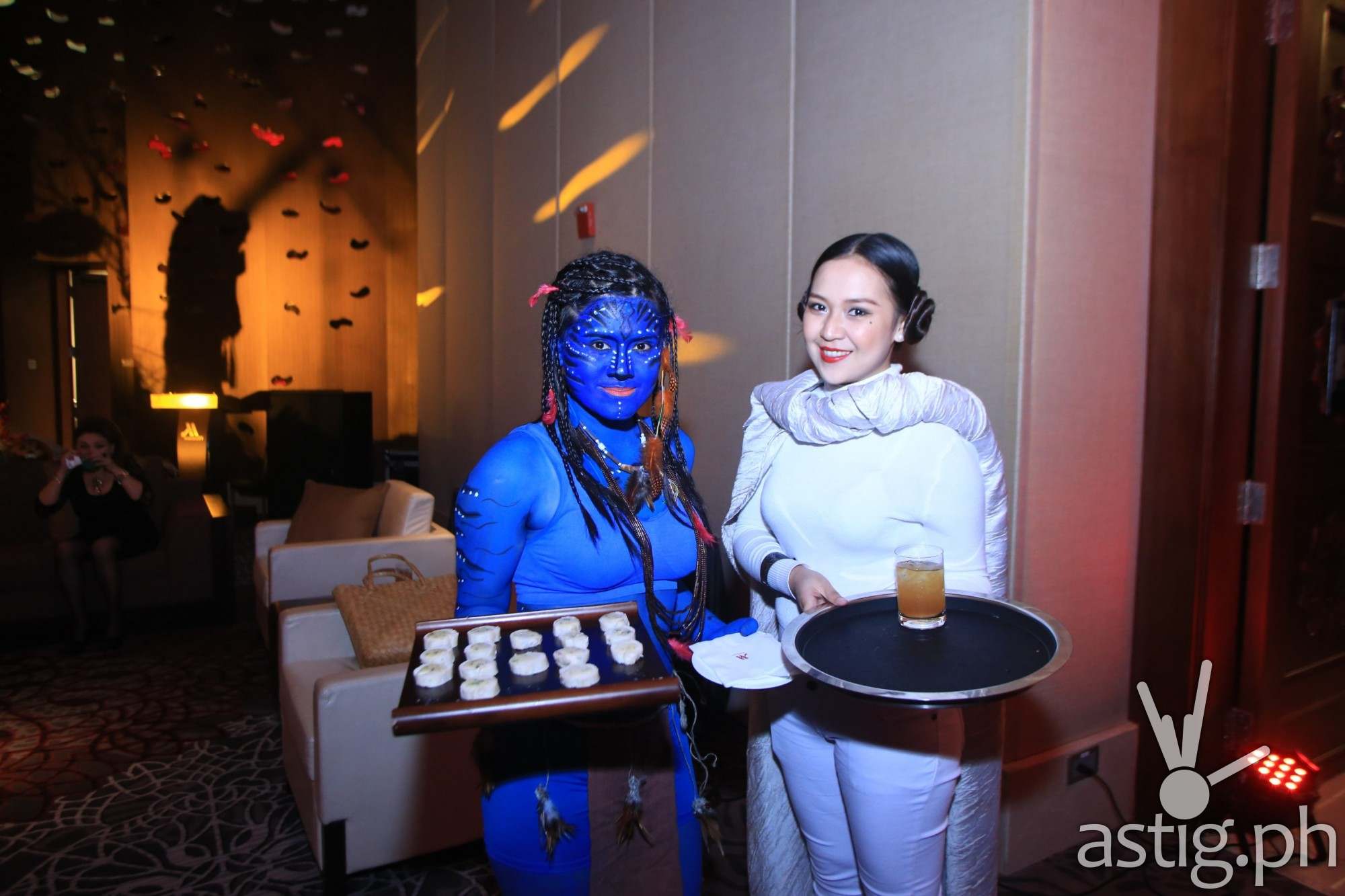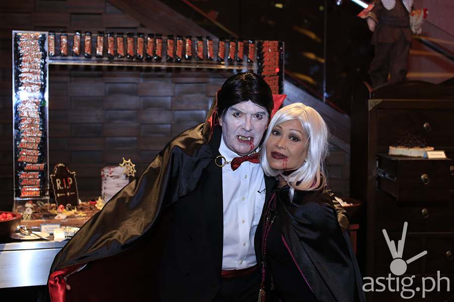Everyone was having a hell of a good time enjoying the spooky décor, lights, and sounds plus the entertainment by Mark Mabasa and friends. Whether they were getting silly or scary, each customer kept coming back for more food and beverages. Shrimps Marinated with Ginger Garlic Lime was offered as hot stone food, while Farfalle with Mushroom Beef Ragout and Spiced Shrimps Curry on Jasmine Rice were served on big bowls. Others savored the Seafood Raw Bar with Local Oysters, Steamed Shrimps, and New Zealand Mussels which were dipped in lime and lemon, cocktail sauce, tobasco, and horseradish. Zombie or not, a lot of guests devoured the Crispy Suckling Pig wrapped in Crepe with Spring Onion Cucumber paired with either chili sauce, honey mustard dip, hoisin sauce, sate sauce, honey lemon sauce, mayo garlic, or liver sauce. Servers did not have to walk far because the Beetroot Macaron, Goat Cheese Cream, and Sous Vide of Chicken Boneless Chicken Roulade on their trays were gone in seconds!
