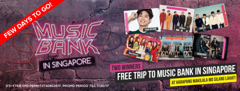 The lucky winner and a companion will get round-trip tickets to Singapore, seats at the Music Bank, as well as hotel accommodations. That’s three days and two nights at the famous Lion City known for its beautiful man-made gardens, great street food, and colonial architecture.