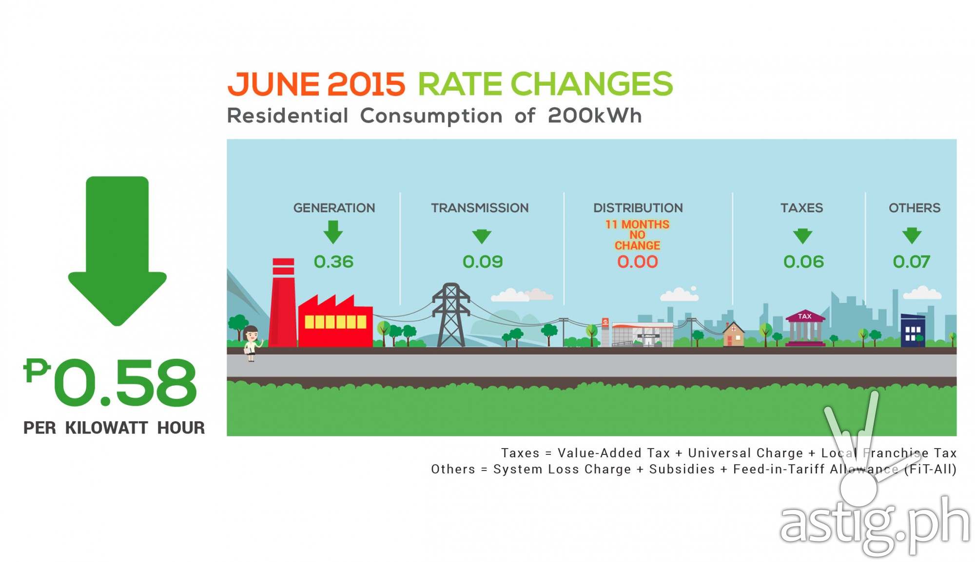 In addition to the generation charge, transmission charge also registered a reduction of PhP 0.09 per kWh. Taxes and other charges also went down by PhP 0.06 and PhP 0.07 per kWh, respectively.
