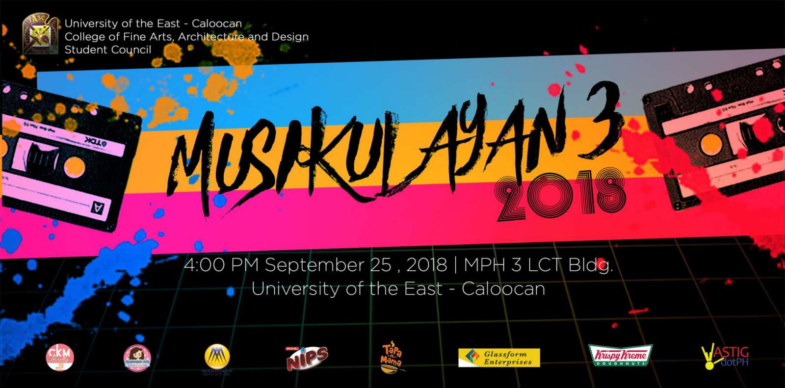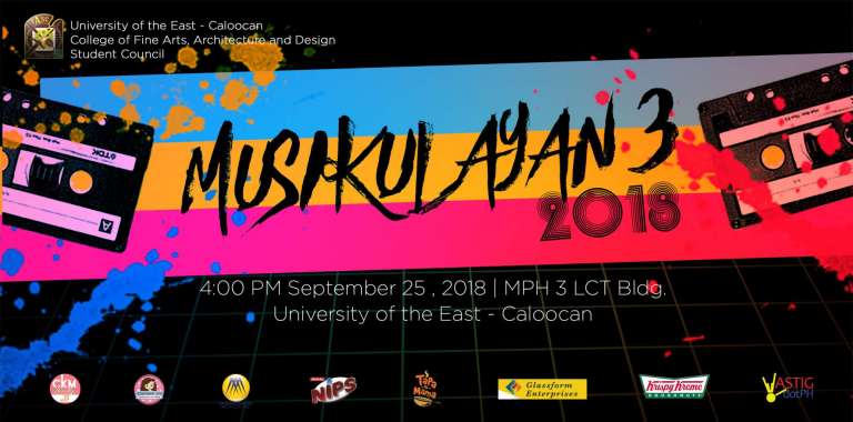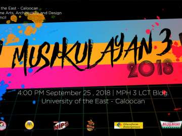 The College of Fine Arts, Architecture and Design Student Council (CFADSC), the highest representative and service-giving body of the Architecture, Interior Design, Advertising, Painting and Visual Communication students of the University of the East-Caloocan invites you to “MUSIKULAYAN: TRES”. It is a competition for the different Recognized Student Organization of University of the East for both Caloocan and Manila Campus.