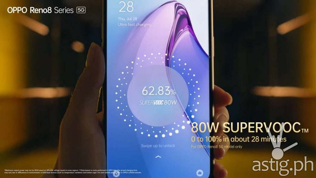 To provide you with worry-free and more memorable nights, the OPPO Reno8 5G is built with a 4500mAh battery integrated with an 80W SUPERVOOC fast-charging feature, allowing you to power up from zero percent to 100 percent in 28 minutes. It also features a MediaTek Dimensity 1300 5G 6nm octa-core processor, 8GB of RAM, and 256GB of ROM for excellent and lag-free performance.