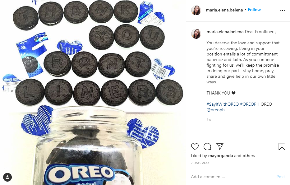 Across the country, many others have also been showing their support for the health frontliners with #SayItWithOreo heartfelt messages of encouragement, hope, and gratitude, proving that meaningful connections can be made over space and distance, you only need to open your mind to the possibilities!