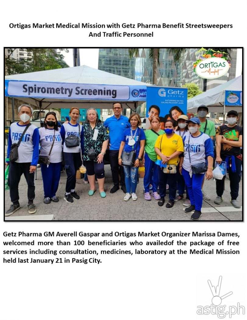 In grateful appreciation for the service of the sanitation staff, security personnel and traffic enforcers who keep Ortigas Market clean and safe, DTC Promos Inc. and Getz Pharma held a Medical Mission on January 21, 2023 in Pasig City.