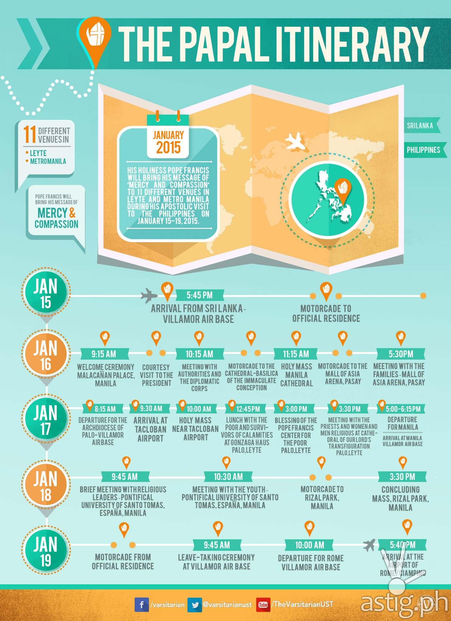 You can also check out the official infographic of the itinerary of Pope Francis during his visit to the Philippines.