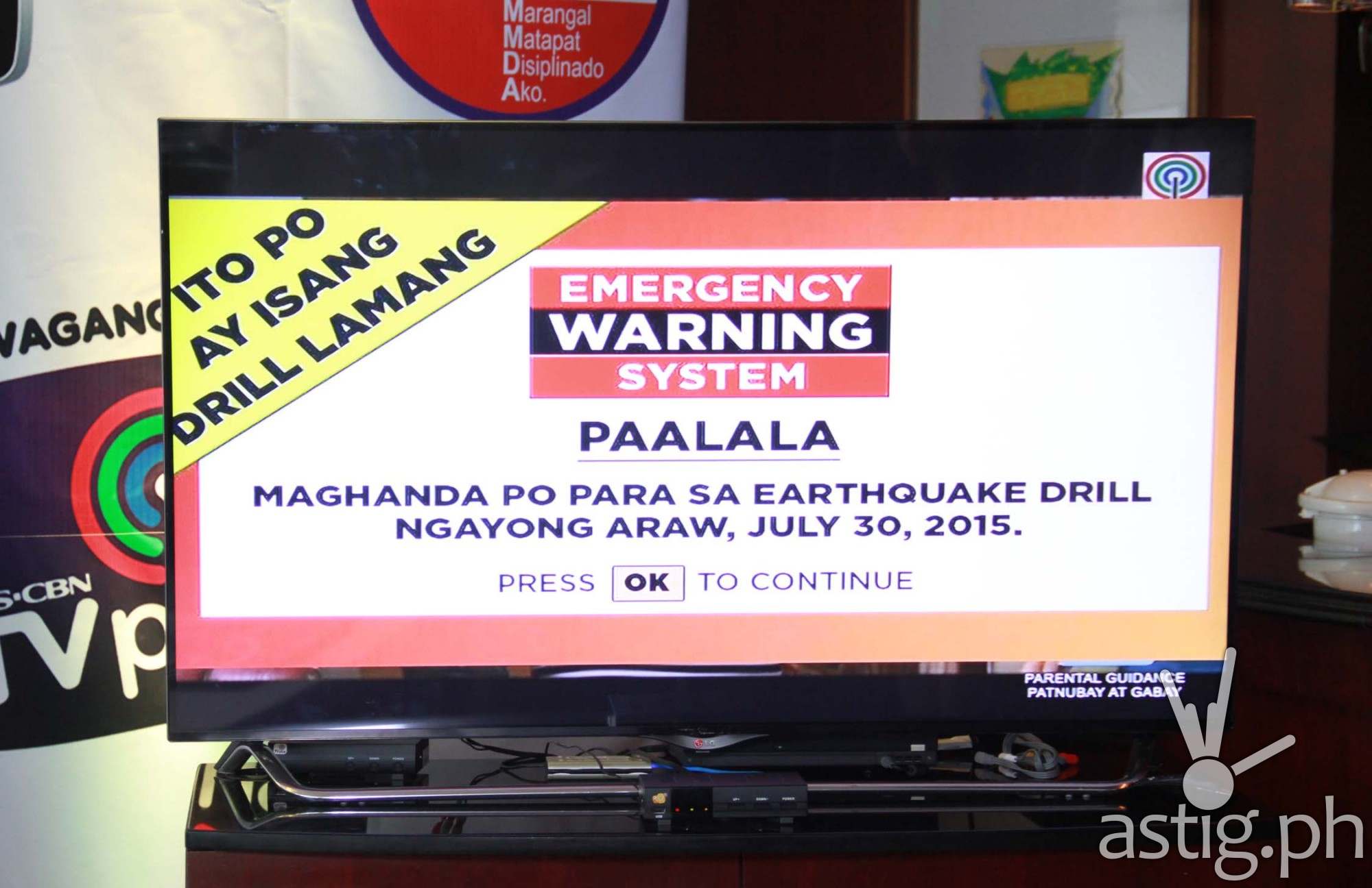 During the drill, subscribers of ABS-CBN TVplus will receive a warning message flashed on their TV screens and will deliver more information about the activity.