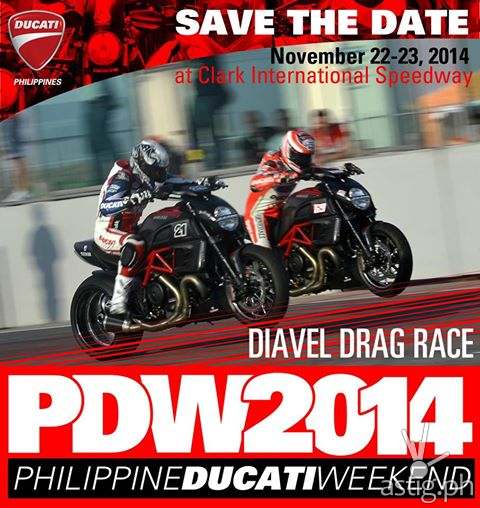 The Philippine Ducati Weekend is an event open to all, motorcycle enthusiasts and non-motorcycle enthusiasts alike. Save the date, see you all at Clark International Speedway on November 22-23, 2014, and let’s all be a part of this historical Ducati event in the Philippines!