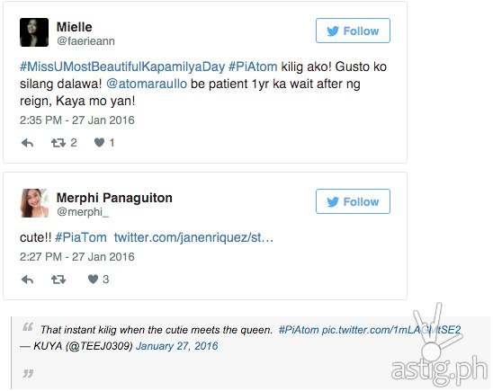 Atom kisses Pia in cheeks after the interview that brought the twitterverse to “kilig.: