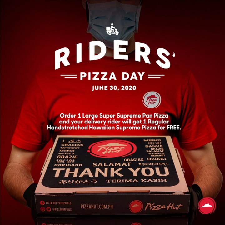 As a show of their appreciation to delivery riders, Pizza Hut will be celebrating Riders’ Pizza Day on June 30, 2020. On the said date, delivery riders will be given a box of free pizza for every ala carte order of a Large Super Supreme Pan Pizza that they deliver.