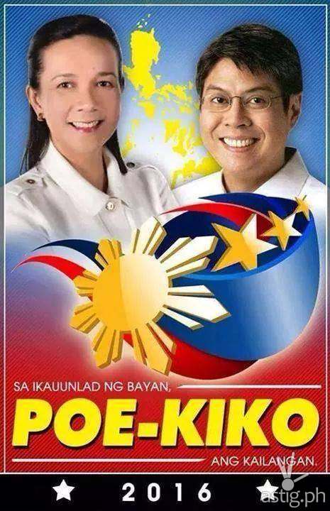 A mock poster featuring Senator Grace Poe and Francis “Kiko” Pangilinan running in tandem for the 2016 Philippine elections has been making its way around social media. Entitled “POE-KIKO”, the poster plays with the names of the two politicians, apparently running in tandem for the position of President and Vice President.