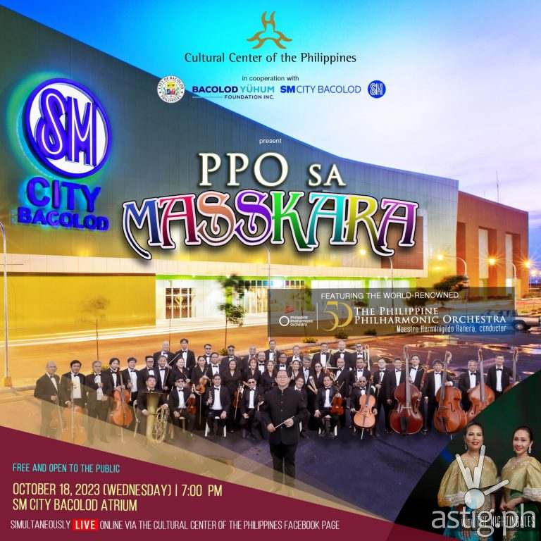 BACOLODNONS can look forward to an unforgettable night of music as the Philippine Philharmonic Orchestra (PPO) serenades them live in a concert billed as PPO sa MASSKARA on October 18, 2023 in Bacolod City in Negros Occidental. Bacolod is known for its MassKara Festival held during the third week of October and for bearing the nickname “The City of Smiles” as well as famous for its local delicacies Piaya (muscovado-filled unleavened flatbread), Cansi (bone-in beef shank soup), and Chicken Inasal (chargrilled or roasted chicken).