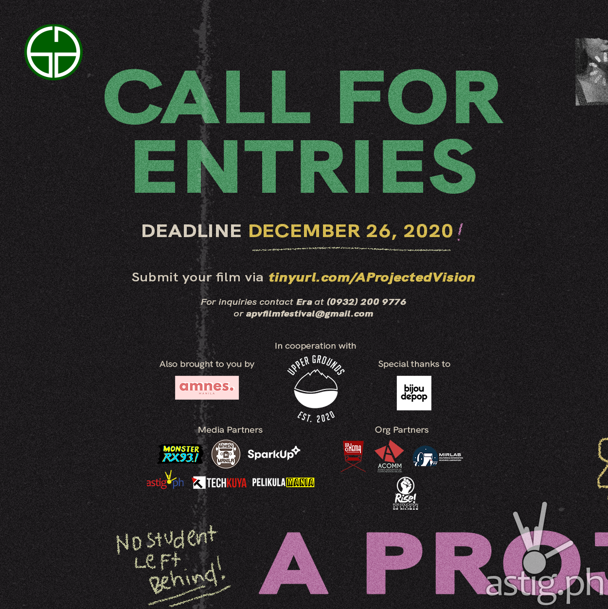 Only 3 weeks left to send in your film entries to A Projected Vision, a premier film festival for students all around the Philippines with the hopes of making a change through art.