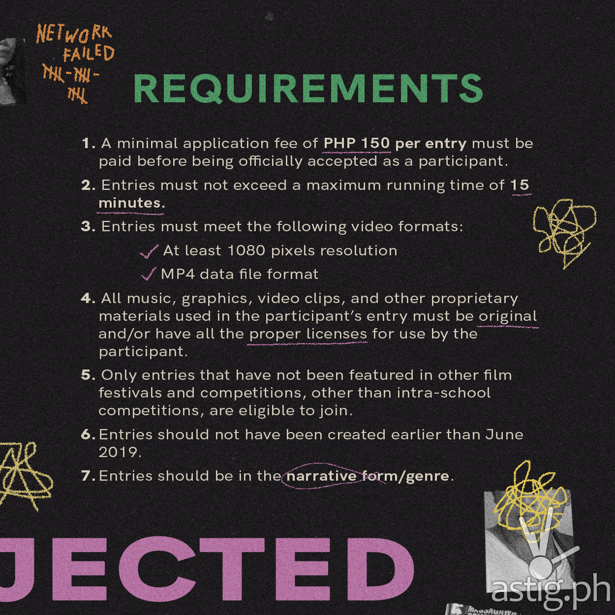 1. A minimal application fee of PHP 150 per entry must be paid before being officially accepted as a participant.
