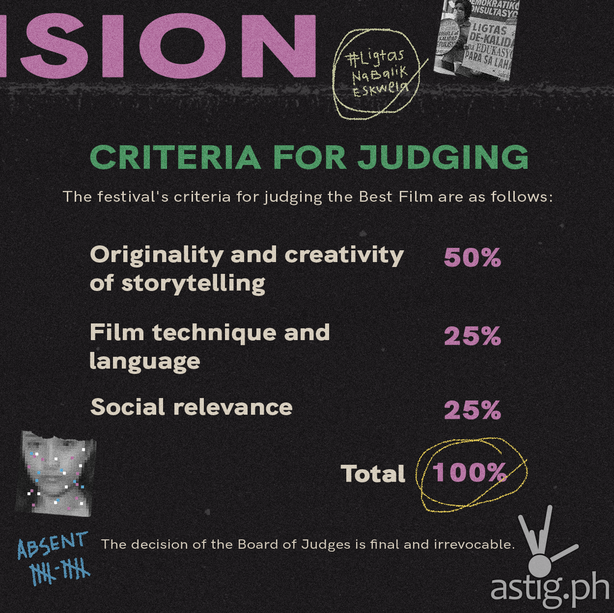 This year’s #AProjectedVision aims to shed light on the inequalities in education faced by millions of students, now amplified by the pandemic. Through this film festival, we provide a platform for aspiring student filmmakers in addressing this issue and further amplify the call for #LigtasNaBalikEskwela.