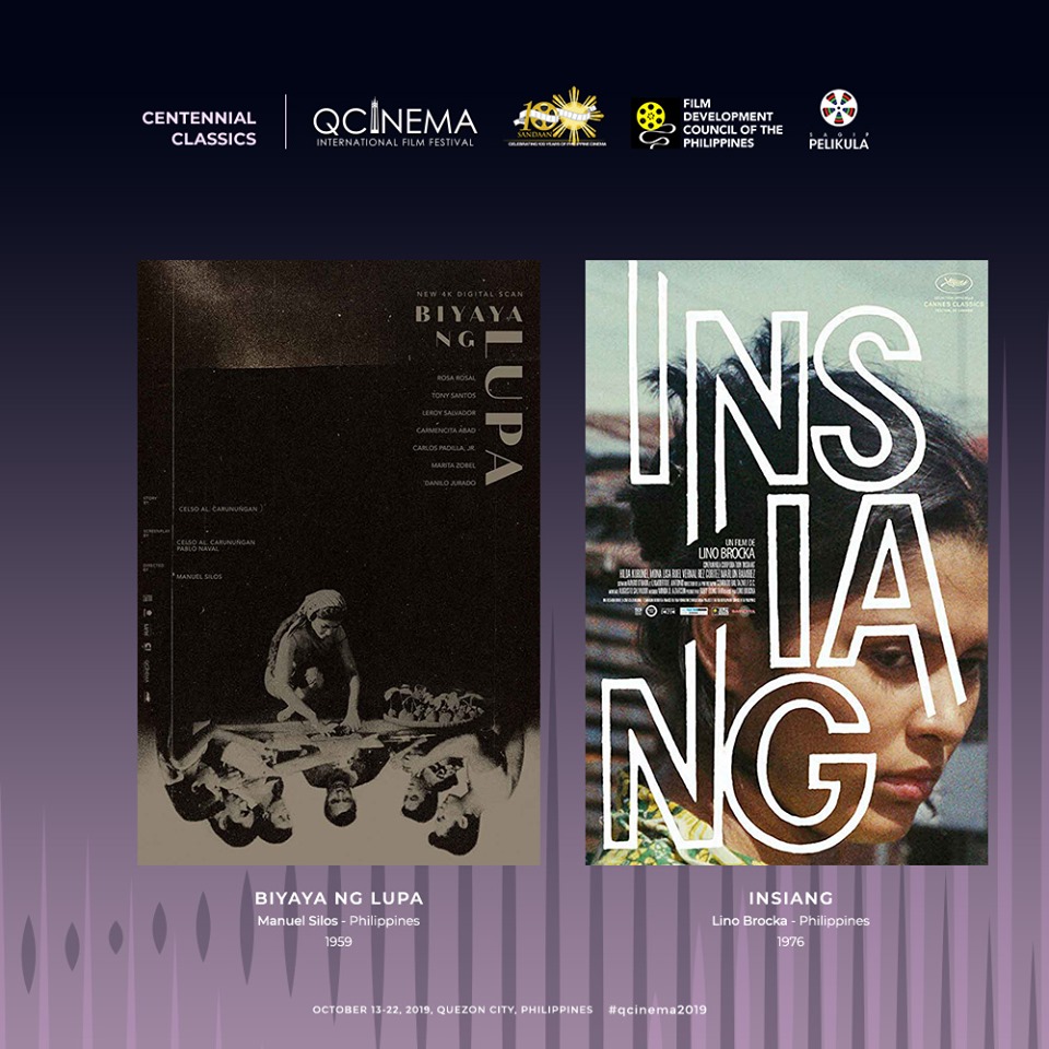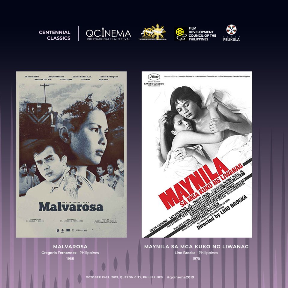 Centenial Classics will feature digitally restored films by ABS-CBN Film Restoration Project and FDCP. Part of the list are Biyaya ng Lupa (Manuel Silos); Malvarosa (Gregorio Fernandez); Insiang and Maynila sa Kuko ng Liwanag (Lino Brocka); Noli Me Tangere (Gerardo de Leon); and Tisoy (Ishmael Bernal).