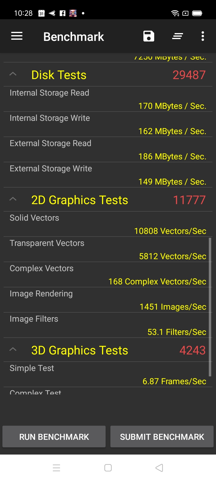 Synthetic benchmarks reflect the entry-level experience that we were getting. We tried to squeeze more points by setting the phone on High Performance mode and adding the benchmark applications to the Game Center, but the scores remained around the same range.