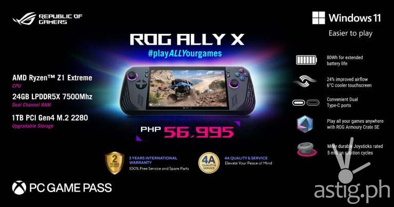 ROG Ally X will be available starting August 23, 2024, through authorized ROG Exclusive Stores nationwide for PHP 56,995.00. The purchase also includes a complimentary 3-month PC Game Pass subscription, the ASUS 4A Quality and Service warranty package, and the ASUS Preventive Maintenance Service. Owners of the ROG Ally X are promised the penultimate gaming experience as well as peace of mind.