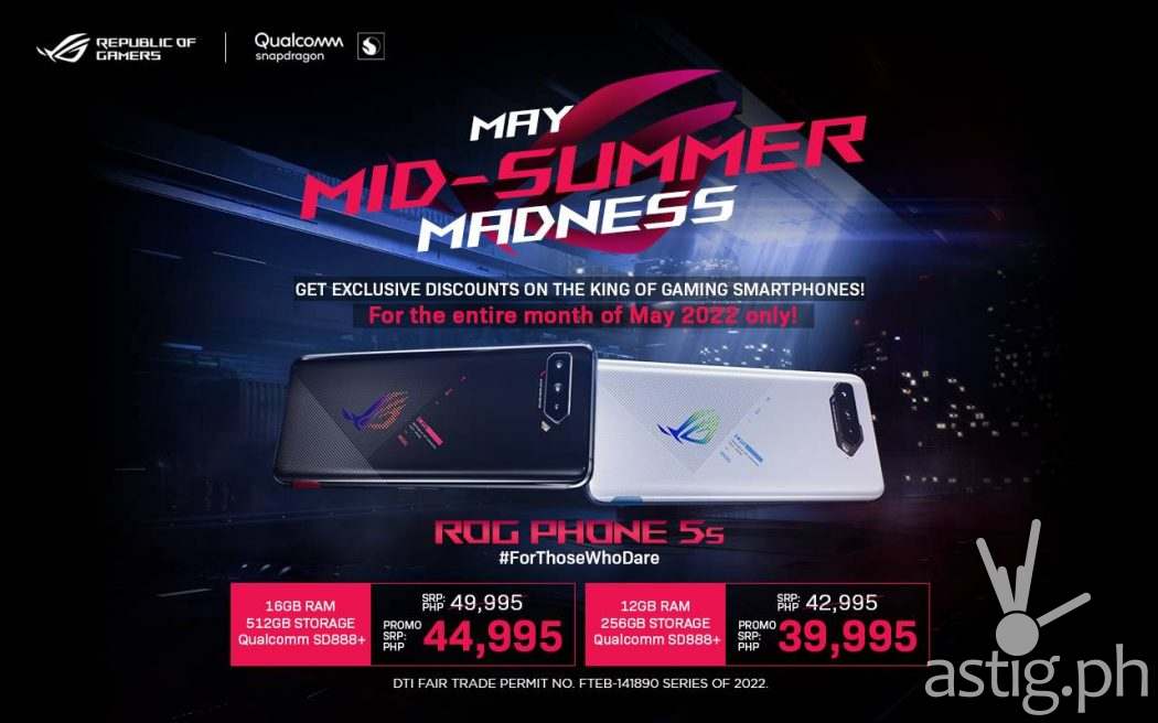 ASUS Republic of Gamers (ROG) is starting the summer season big with the May Mid-Summer Madness Sale! ROG fans can get their hands on the king of gaming smartphones—the ROG Phone 5s—and enjoy up to PHP 5,000 worth of discounts from May 1 to May 31, 2022!
