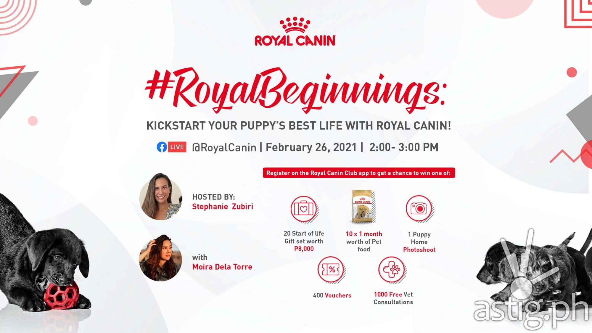 Make the transition easier for your four-legged friend with tips from certified fur-mom, Stephanie Zubiri, who will be hosting the webinar, as well as speakers like Moira Dela Torre, Dr. Ed Unson of Animal House Veterinary Clinic, Professional Breeder Meg Laudit, and Dr. Kitsie Torres of Royal Canin. They will each discuss key golden moments of your new puppy’s life from puppy-proofing your home, buying the right gear, how to train and socialize them, to vaccinations and nutrition.
