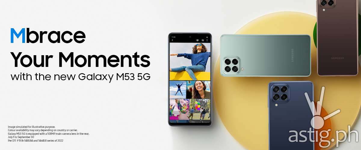 The Galaxy M53 5G comes in Blue, Green, and Brown. It is available for PHP 29,990 SRP on Samsung.com and other online platforms like Lazada, Shopee, and Abenson.com. Customers can enjoy a PHP 3,000 discount when they purchase the smartphone until September 30, 2022.