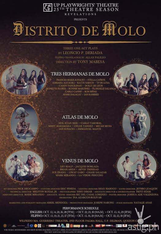 For the technicals, Distrito de Molo’s artistic team includes Nick De Ocampo (set design), Shax Siosoco (lights design), Eric Pineda (costume design), and Jethro Joaquin (sound design).