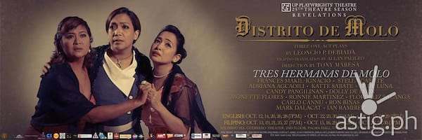 The first play, Tres Hermanas de Molo, is set in the 50’s and revolves around the post-war lives of the wealthy Locsin sisters. All three are unmarried, and are each carrying a dark secret from their past.