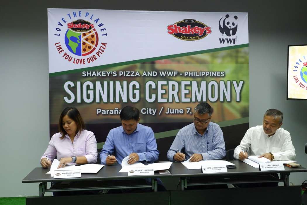 To reinforce their move to save the environment, Shakey’s is now setting its sights on becoming plastic neutral in 2020 – and has partnered with the World Wide Fund for Nature (WWF) to promote the organization’s #AyokoNgPlastik movement. Sealing this formidable alliance at Shakey’s WOW Center in Paranaque were Vic Gregorio, President and CEO of Shakey’s Pizza and Jose Angelito Palma, President and CEO, WWF Philippines.