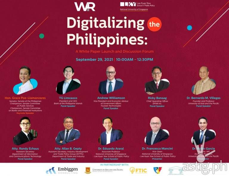 Given those gaps, public affairs and strategy firm W&R and the National University of Singapore-Lee Kuan Yew School of Public Policy, one of the top public policy schools in the world, is organizing a discussion forum and white paper launch entitled: “Digitalizing the Philippines: A White Paper Launch and Discussion Forum” on September 29 at 10:00 AM local time.
