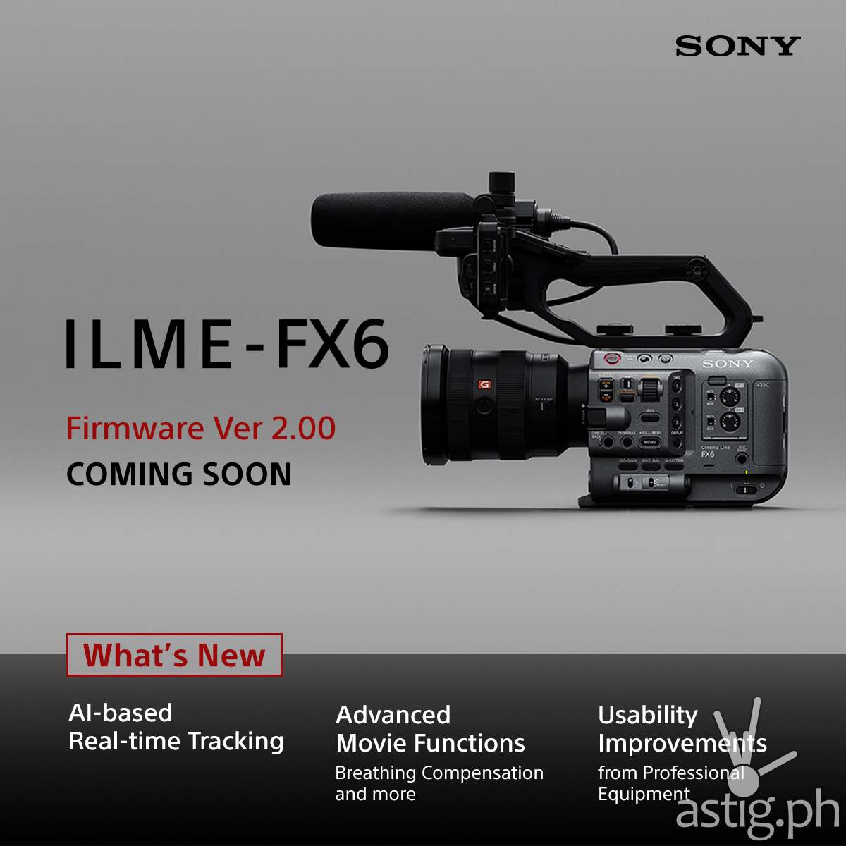 PHILIPPINES – Sony recently announced a new firmware update (Version 2.00) for full-frame Cinema Line camera, FX6, that includes AI-based Real-time Tracking—a long-awaited Auto Focus feature that enables extreme precision when tracking subjects.